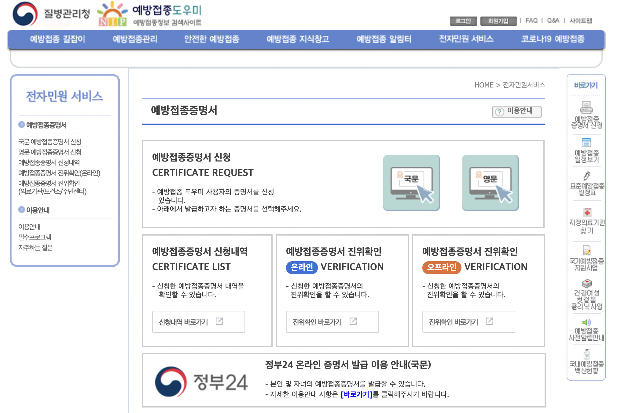 질병관리청 사이트(nip.kdca.go.kr)에서 여행일 14일 이내의 예방접종증명서를 신청하여 발급받아야 합니다.