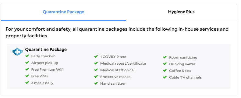 최초 도착 1박은 의무적으로 SHA+/ AQ/ OQ/ AHQ 숙소에서 최소1박 숙박. 숙소 예약 시 코로나19 검사 비용과 공항-숙소간 교통편 비용도 함께 예약 완료 해야함. |