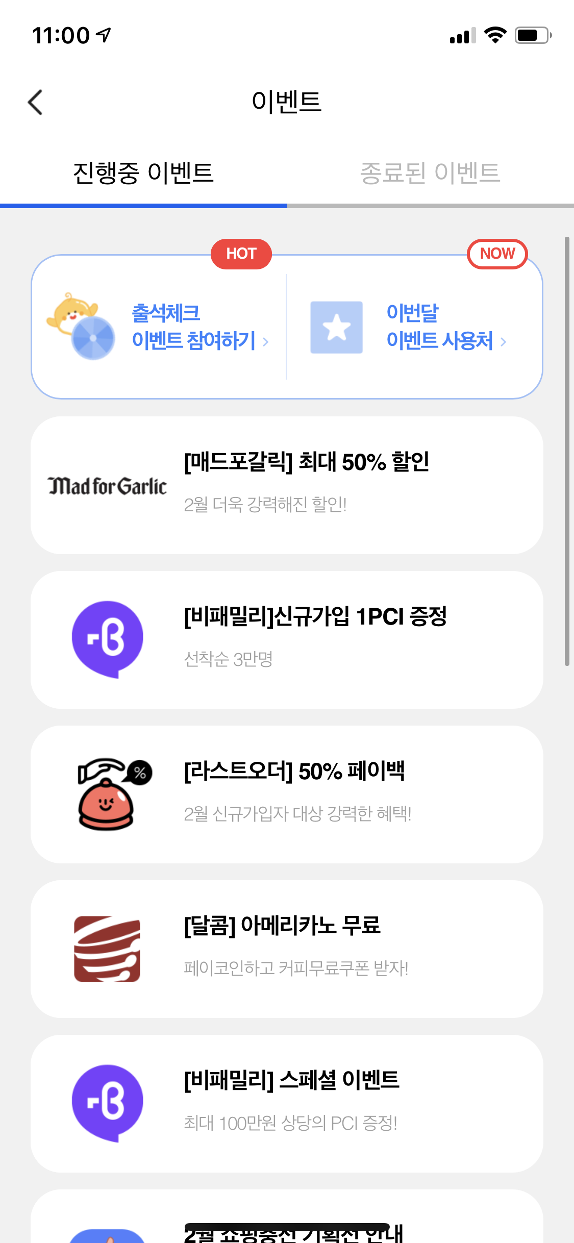 그 외에 많은 이벤트를 페이코인 앱에서 확인할 수 있습니다.