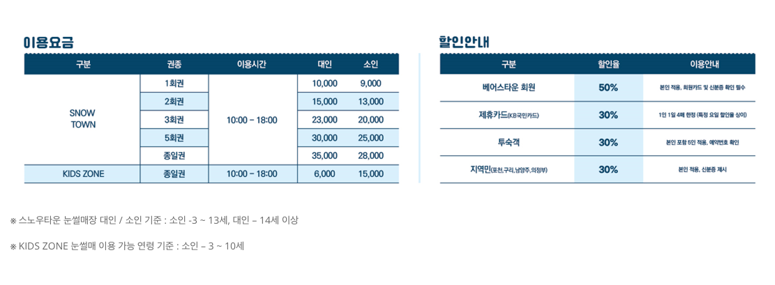 – 입장권 분실 시 스노우타운 이용이 제한될 수 있습니다.