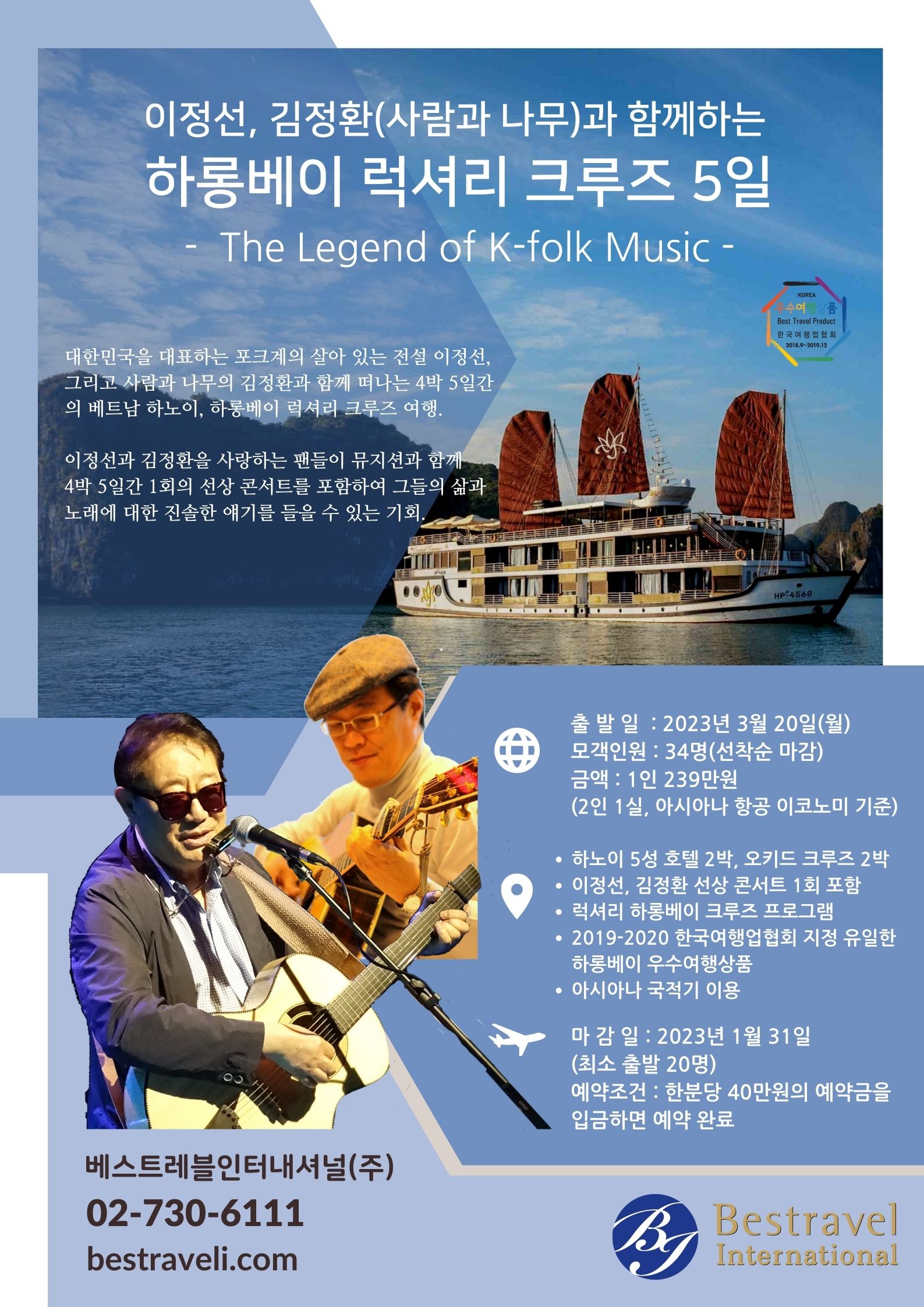 대한민국을 대표하는 포크계의 살아 있는 전설 이정선, 그리고 사람과 나무의 김정환과 함께 떠나는 4박 5일간의 베트남 하노이, 하롱베이 럭셔리 크루즈 여행.