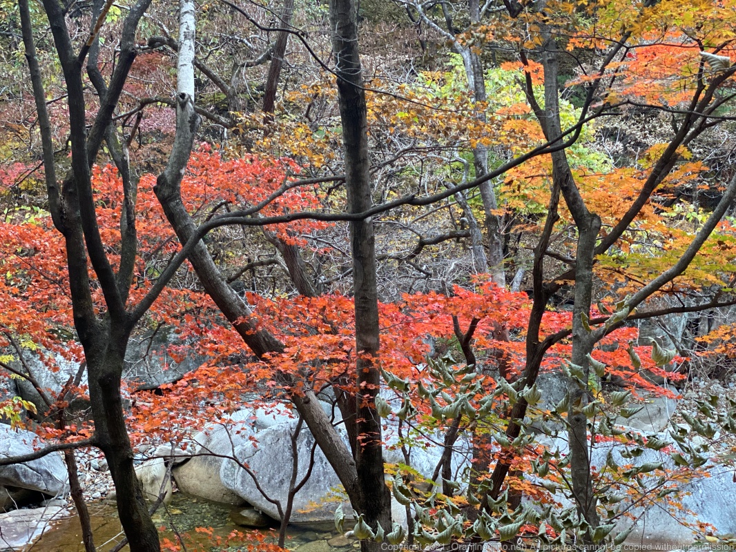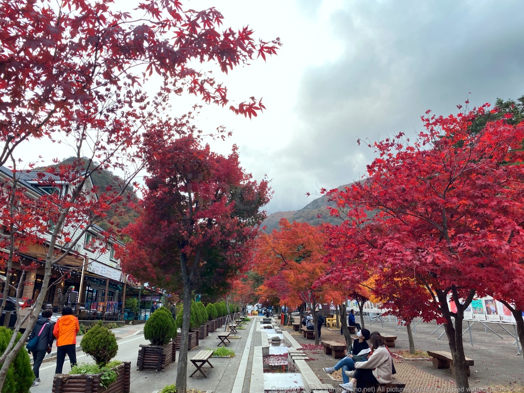 멀리 보이는 산은 울긋불긋하지만 무릉계곡 입구는 빨갛게 예쁜 단풍이 만발합니다.