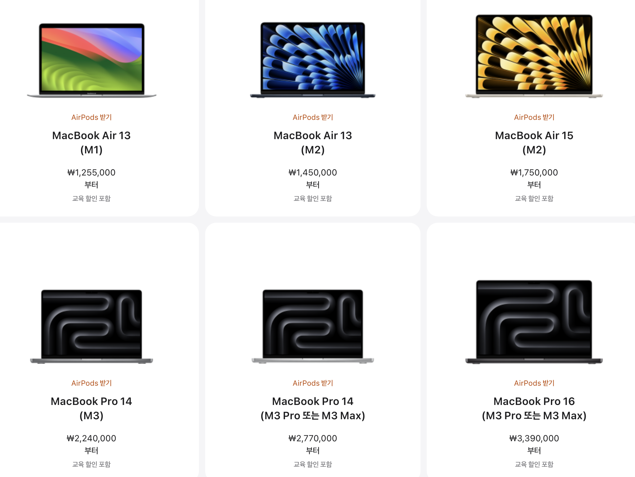 | Mac | Mac mini | AirPods(2세대) | ₩199,000 |