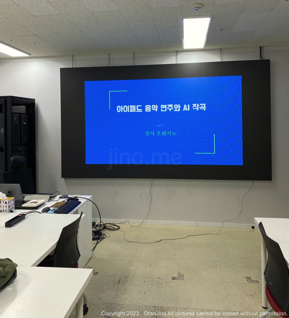 아이패드 음악과 AI 작곡 강의를 진행하는 강사 오렌지노입니다. 지난 25일 DMC첨단기술센터 뉴작 강의실에서 chatGPT AI 작곡 강의를 진행했는데, 인공지능 음악 생성 강의와 함께 저작권 등 화두를 이야기할 수 있었던 좋은 시간이었습니다.
