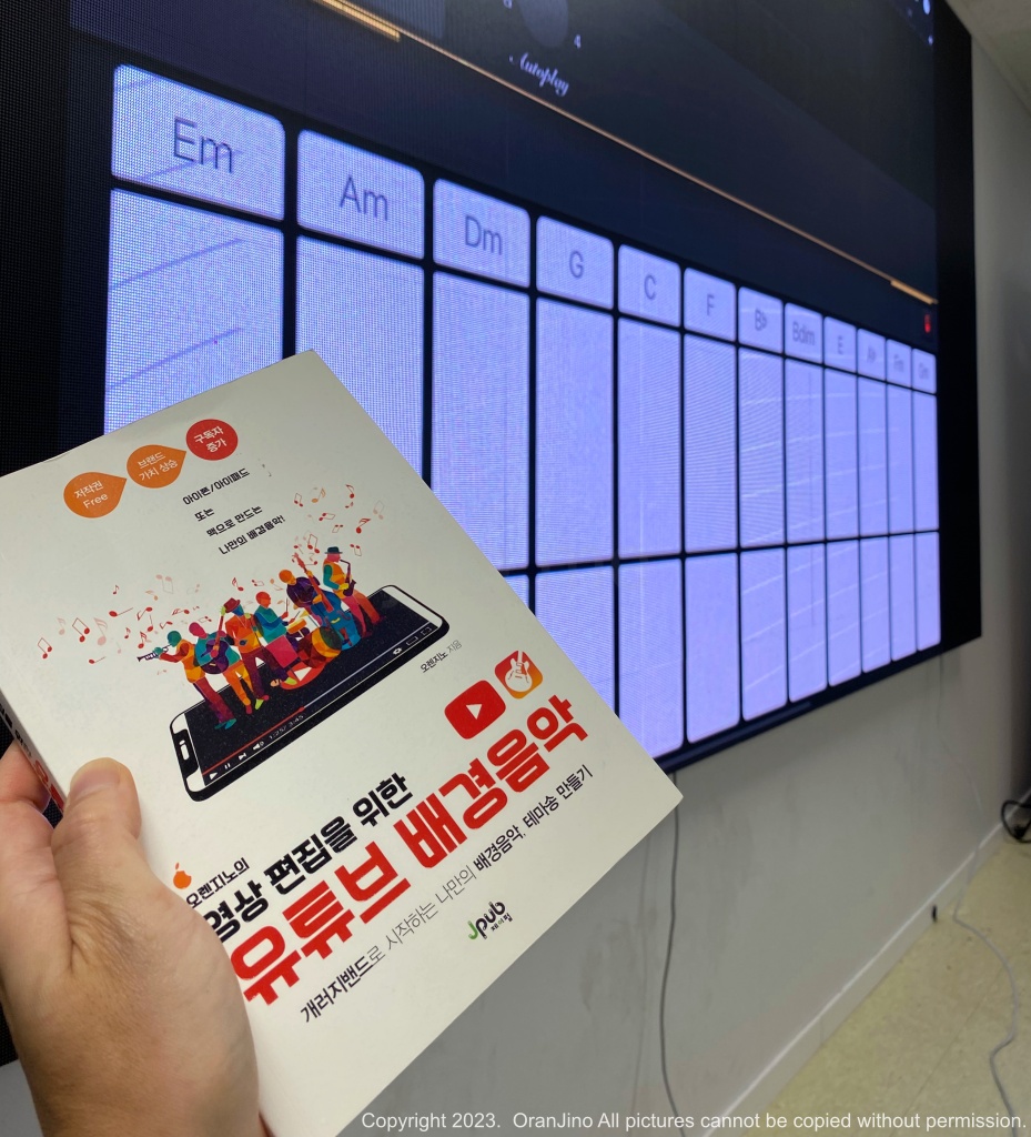 저의 아이패드 음악 강의 교재는 저자직강으로 '오렌지노의 영상 편집을 위한 유튜브 배경음악 - 개러지밴드로 시작하는 나만의 배경음악, 테마송 만들기'로 진행하지만, 마침 시기상 절판이 되어 교재로 나누어 드릴 수 없었던 게 안타깝습니다. 이북으로는 여전히 구매가 가능하지만요.