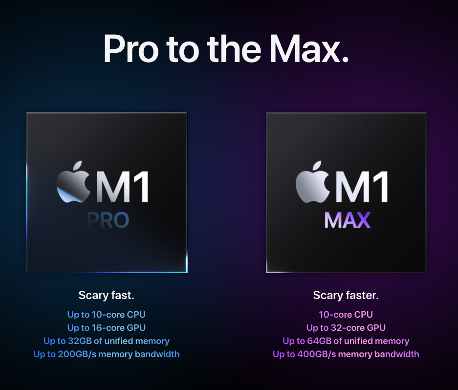 M1 Pro(10코어 CPU 및14코어 GPU), M1 Pro(10코어CPU 및 16코어 GPU), M1 Max(10코어CPU 및 24코어 GPU) 또는M1 Max(10코어 CPU 및 32코어GPU)