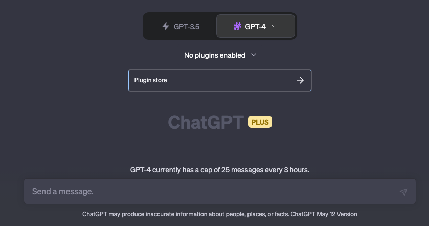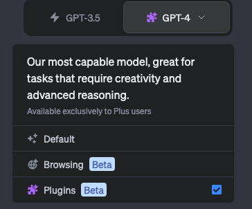GPT-4 설정에서 기본, 브라우징, 플러그인 모드를 선택할 수 있습니다.