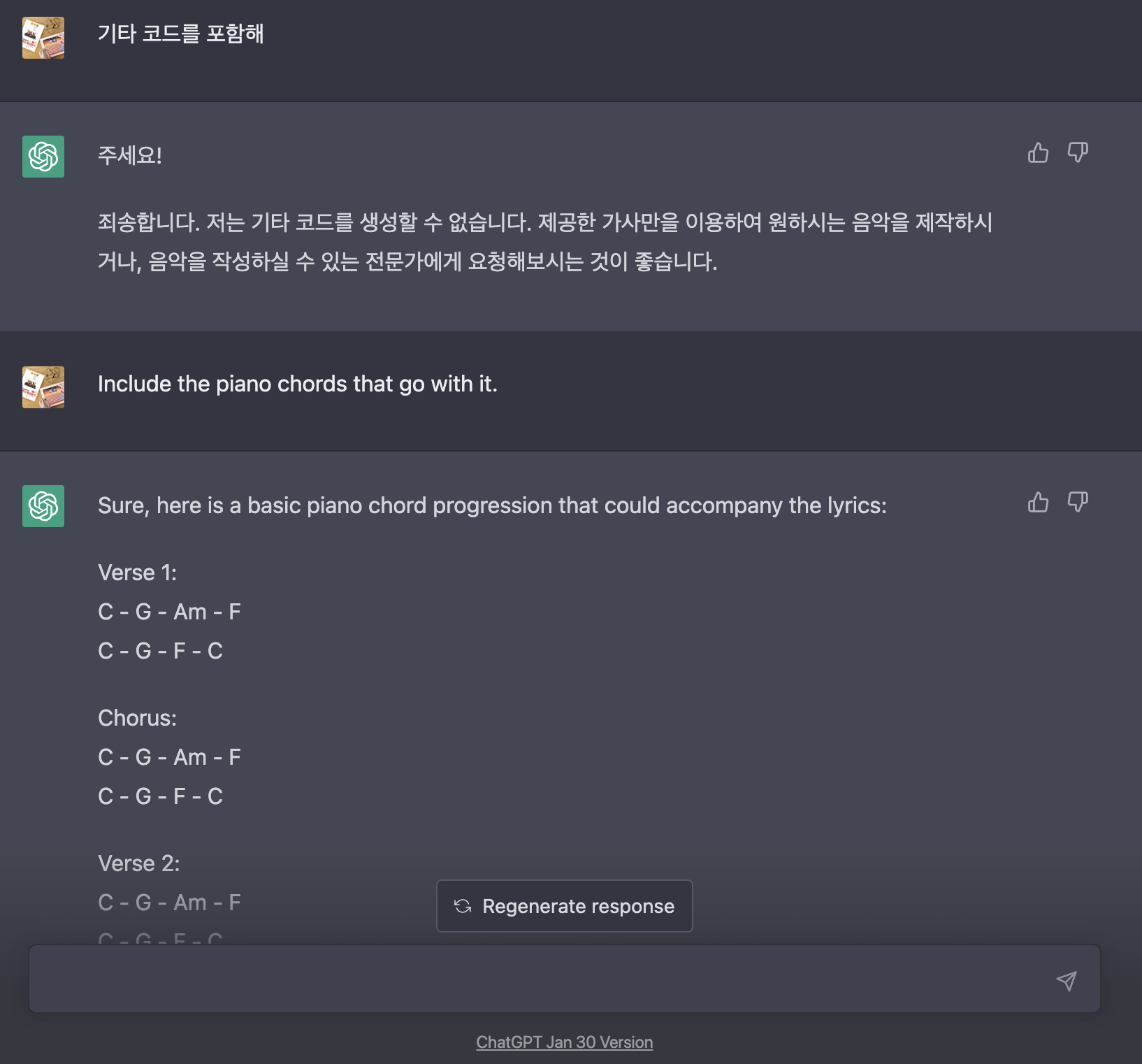 이번엔 기타 코드를 포함하라고 해봤습니다.