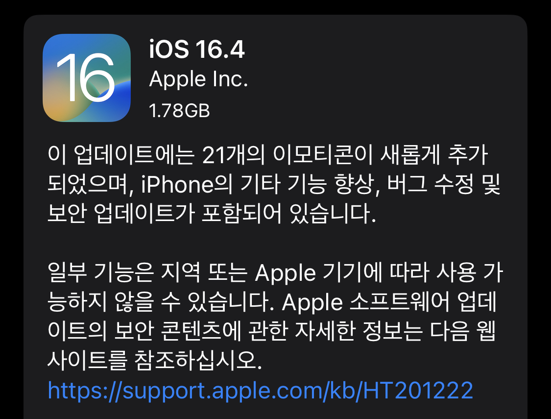 | iOS 16.4 및 iPadOS 16.4 | iPhone 8 및 이후 모델, iPad Pro(모든 모델), iPad Air 3세대 및 이후 모델, iPad 5세대 및 이후 모델, iPad mini 5세대 및 이후 모델 |