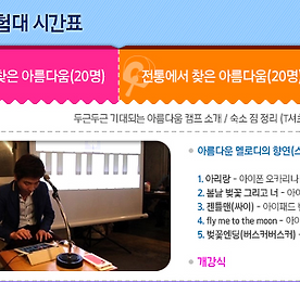 반응형 사회공헌 반응형 썸네일형 리스트형 여고생 교육기부 아름다움탐험대 아이패드 개러지밴드 오프닝 공연 아모레퍼시픽의 사회공헌활동 중, 교육기부 차원에서 진행되는 아름다움 탐험대 캠프는 여고생을 대상으로 진행되는 프로그램입니다.전국 각지에서 모인 72명의 고등학교 1~2학년 학생들이 과학, 전통, 현대에서 찾은 아름다움에 대해 1박2일간 배우게 되지요. 그리고 저는 오리엔테이션 전, 오프닝 공연을 하게 되었습니다.평소와 같이 아이패드 개러지밴드와 아이폰 오카리나로 공연을 했습니다. 용인의 아모레퍼시픽 미술관에서 진행된 이 캠프에서 저는 iPad GarageBand 연주를 보여줄 예정이었지요, 3반 중, 파란 옷을 입은 24명의 학생들이 먼저 자리에 앉았네요. 그 때 뒤에서 사진을 찍어보았습니다. 여기서 공연을...!! 72명의 여고생들과 봉사차 참석한 여대생들이 강당에 모여앉았고, 저는 소개를 받으며 공연.. 더보기 여고생 모여라! 아모레퍼시픽 아름다움 탐험대 캠프 아모레퍼시픽 사회공헌포털을 통해 모집중인 아름다움 탐험대 캠프(1박 2일)를 소개합니다.1~2학년의 여고생을 대상으로 아름다움을 찾아 떠나는 캠프! 다양한 체험 프로그램들이 있으니 주위 여고생들에게 적극 추천해주세요. 아래 홍보이미지를 보시면 익숙한 사람이 보이실겁니다. 제가 오프닝 공연을 맡았고요, 아이폰 아이패드로 공연을 하면서 아모레퍼시픽 2013 아름다움 탐험대를 시작합니다. 다녀와서 동영상 올리도록 하겠습니다. 신청기간이니 주변 여고생에게 많이 소개해주세요~ 아모레퍼시픽 사회공헌 포털 바로가기(클릭) 더보기 기업의 아름다운 활동. Daum - 하이픈, SKT - T투게더 건전한 기업이라면, 이익을 사회에 환원할 줄 알아야 할 것입니다. 오늘은 이러한 사회공헌 활동을 잘 수행하고 있는 기업들의 이야기를 전하고자 합니다. 오늘 소개해 드릴 사회공헌 포털은 2개입니다. Daum - 하이픈 SK텔레콤 - 티투게터 (주)다음커뮤니케이션과, 자회사인 다음세대재단은 오래전부터 사회공헌 활동을 하고 있었습니다. 사회 속에서 소외받은 약자들을 위한 모금활동으로도 유명한 하이픈이지만, 특히 유명했던 사건으로는 하이픈 독도광고를 모금을 통해 워싱턴 포스트에 실렸던 사건입니다. 이곳을 클릭하시면 자세한 내용을 보실 수 있습니다. 하이픈은 특히, 미디어의 장점을 살려 희망모금, 유스보이스, 미디어스쿨, 이멘토링 등의 다양한 방법으로 사회공헌에 참여하고 있습니다. 그 중에서도 임직원이 참여하는 .. 더보기 이전 1 다음
